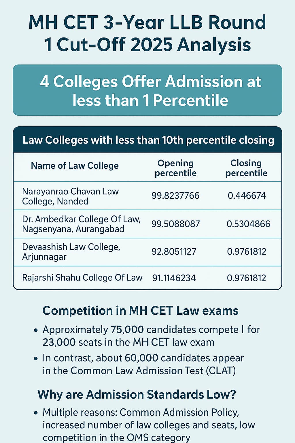 The MH CET law admission percentile dropping below the 10th percentile shows a general decline in competition and admission standards.